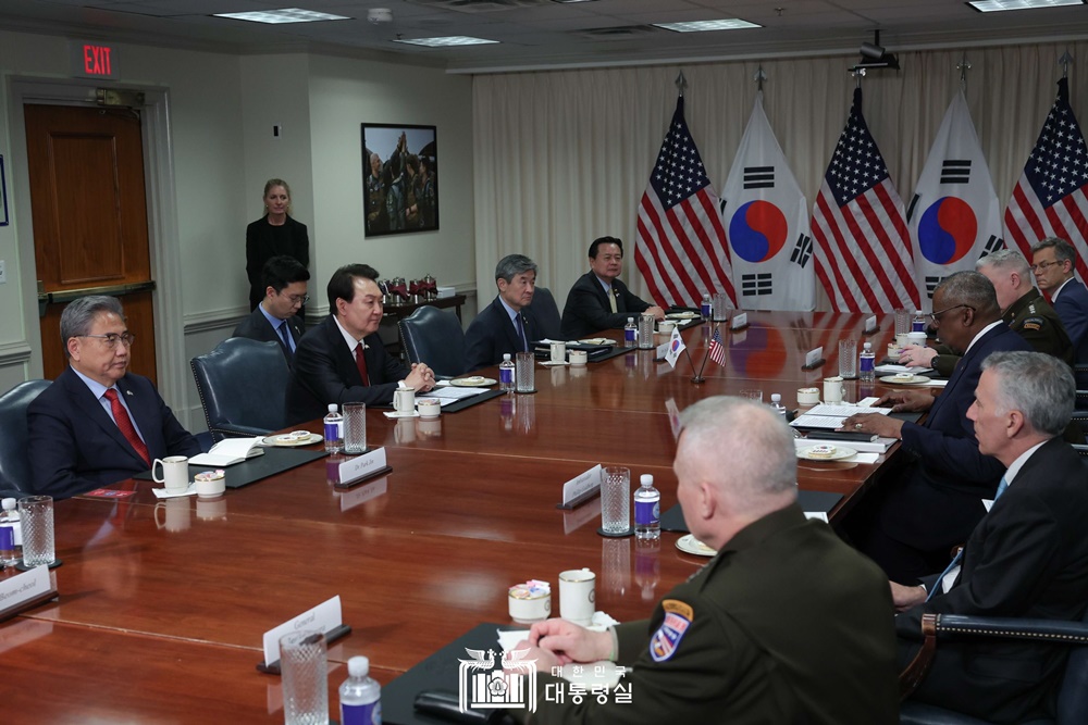 이번 윤석열 대통령의 美 국방부 방문은 대한민국 역대 대통령으로서 3번째 방문이며, 미측에서는 마크 밀리(Mark A. Milley) 합참의장, 필립 골드버그(Philip S. Goldberg) 주한미국대사, 콜린 칼(Colin H. Kahl) 정책차관, 켈리 맥서먼(Kelly E. Magsamen) 국방장관 비서실장, 폴 라캐머라(Paul J. LaCamera) 주한미군사령관 등이 참석했고, 우리측에서는 박진 외교부장관, 조태용 국가안보실장, 조현동 주미한국대사, 김은혜 홍보수석, 신범철 국방부차관, 김태효 국가안보실 1차장 등이 참석했습니다.