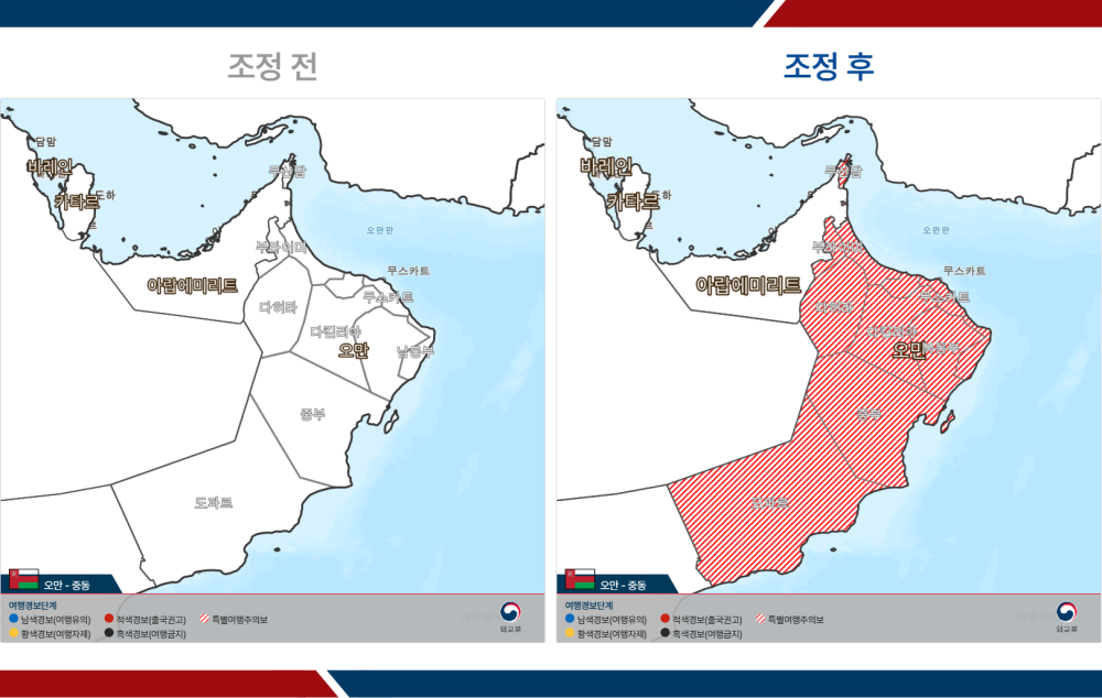 - 오만: 미발령 → 전역 특별여행주의보